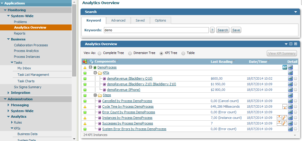 - Go to MWS –> Analytics –> KPIs –> Business Process